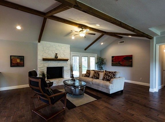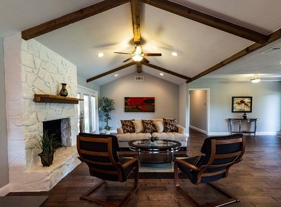 3 Open Houses in Chapel Downs Sunday 10/23/16 2PM to 4PM WOW! Like a brand new home, completely gutted almost everything new including roof. The Modern Open Floor Plan features beautiful hard wood floors which extend into the master bedroom and office, stone wood burning fireplace, vaulted ceiling with accent beams, 3 panel French doors with encased blinds, recessed and decor lighting, and ceiling fans. Freshly painted inside and out, all new windows and door hardware and, 6-inch floor molding throughout. The remodeled kitchen features 42" cabinetry with soft close doors and drawers, quartz counter tops, subway tile backsplash, beautiful decor floor tile, all stainless steel appliances including a farmers sink with professional faucet and a high end 5 burner stove. All baths have beautiful cabinetry, decor tile, dual sinks, oversized shower in the master and new tub in the 2nd bath. The master bedroom is huge with plenty or room for a king sized bed, dressers and a seating area. The 2nd bedroom is a large as most masters in the area. The 4th bedroom/office is split off the kitchen with French Doors leading to a beautiful patio with natural flagstone. The landscaping includes an automatic sprinkler system, gorgeous mature tree, lush grass and excellent wood fence. But don't stop there because, you won't have to worry about the mechanics with a new roof installed in August 2016 along with updated electrical panel. There are too many upgrades to list here so ask for the feature list.