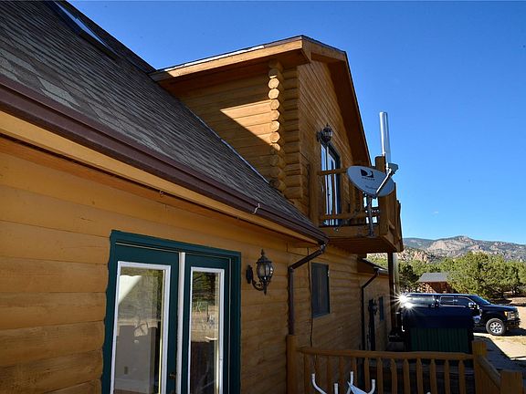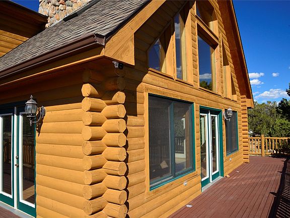 SELLER SAYS ' BRING ALL OFFERS ' UPSTAIRS CAN EASILY BE CONVERTED TO PRIVATE MASTER SUITE Wonderful views and privacy on this 1.98 acre lot with lots of Pinons and set well off the road. Previous owner had a fenced garden plot. Wrap around deck with views on all sides and an over-sized two car garage. New Carpet/Paint - Family room with bar in the basement and a pellet stove on a thermostat -- stone fireplace in living room and floor to ceiling windows, -- 30 year architectural shingles, log sided home. Detached rustic historic cabin with front porch, Borders public land, close to ski resort.