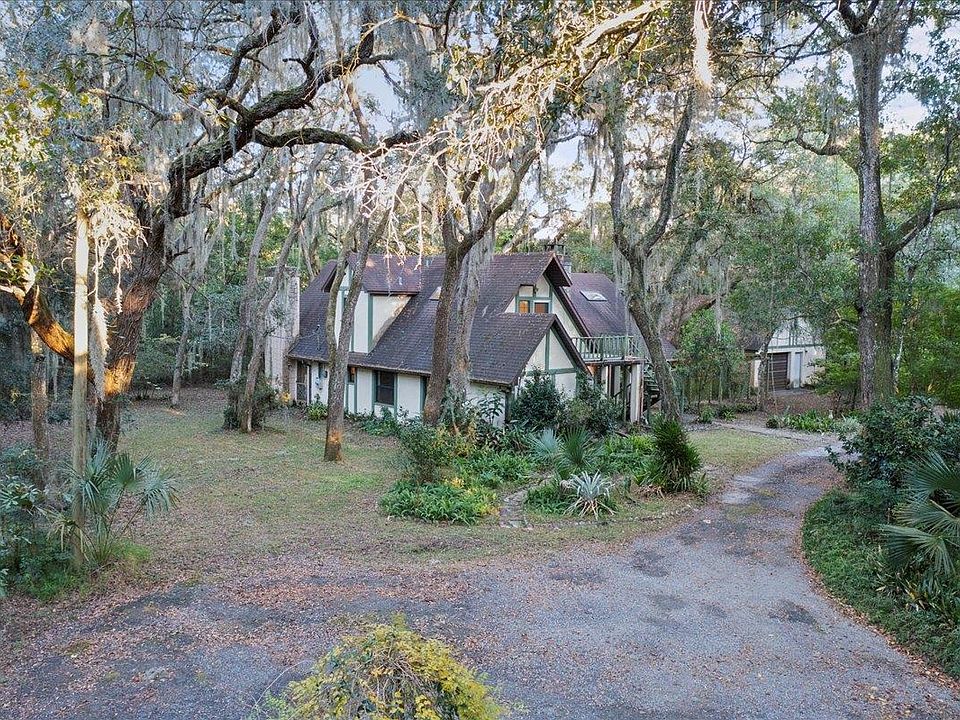 Discover a rare and remarkable property nestled beneath a canopy of live oaks in the heart of Saint Augustine. This three bedroom two and a half bath home sits on a serene wooded lot and radiates charm with cottage inspired architecture, stone accents, and the kind of character that feels straight out of a storybook. If you are searching for privacy, personality, and the chance to shape your ideal retreat, this property delivers from the moment you arrive. The interior features a spacious layout with a generous living area, built in cabinetry, and distinctive design touches throughout. The kitchen offers abundant counter space, an island, and ample storage, providing a perfect foundation for your dream culinary space. A spiral staircase leads to the upper level where additional living space opens to a private balcony overlooking the treetops. The grounds are just as special. A covered breezeway, multiple outdoor sitting areas, a detached garage or workshop create endless opportunities for hobbies, storage, or future expansion. Your private retreat awaits at the end of a quiet cul de sac on acres of land. Properties with this level of space and seclusion, yet only minutes from the city’s beaches, restaurants, and historic attractions, are exceptionally hard to find. Country Creek Lane offers a setting buyers wait for, complete with mature oak canopies, wide open green space, established vegetation, and fruit trees throughout the property. The home itself provides solid bones and timeless appeal, giving you a canvas to renovate or expand to match your vision. Whether you dream of a garden, workshop, guest house, or simply room for recreational toys, the land offers endless potential. Here you enjoy the peace of country style living with the convenience of being only fifteen minutes from everything that makes Saint Augustine beloved. Privacy and usable acreage this close to town is rarely available, making this a true standout for anyone seeking space, nature, and possibility in one address. Country Creek Lane is ready for its next chapter. Explore the gardens, entertain outdoors, or simply enjoy nature right outside your door. With quick access to shopping, dining, medical facilities, and the beaches and historic downtown, this is a unique opportunity to restore and personalize a truly special property. Bring your vision and make this enchanting retreat your own.