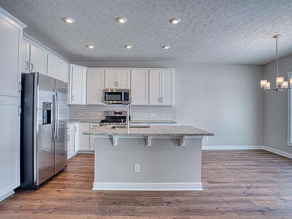 This Highland Series home has a ranch-style design and a split-bedroom layout. You’ll find the secondary bedrooms and a full bathroom as you enter the foyer. Moving forward, you’ll discover a roomy family area, a kitchen with an upgraded layout and island, and ample dining space. The kitchen includes granite countertops, a tile backsplash, and a stainless steel appliance package with a gas range. Attic storage is accessible in the garage. The owner’s suite is adjacent to the family room and comes with an ensuite bathroom, including a double bowl vanity, a ceramic shower, and a generously sized walk-in closet. The home also boasts a spacious laundry room and a private, covered patio. RevWood Select Granbury Oak flooring is throughout the main living areas and ceramic tile is installed in the wet areas. Jagoe TechSmart components are included. You’ll love this EnergySmart home!