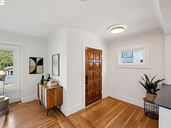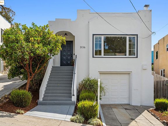 Nestled among the serenity of Oakland’s Maxwell Park neighborhood, you’ll find a charming, updated, split-level c.1925 home at 3136 Kingsland Avenue. Three bedrooms and 1.5 bathrooms grace this home. Add to that a sunny, updated kitchen, opening to a dining and living room, with brick fireplace and a front window overlooking the neighborhood. Hardwood floors glow throughout the home, while dual-pane windows add to the peacefulness within. Both renovated bathrooms feature cheerful tile work. A laundry room is tucked away on the ‘mezzanine’ level off the kitchen, opening to the side year, while another bedroom and the primary bedroom suite are located a few steps up, with French doors to the back deck. The backyard oasis features a redwood deck shaded by a pergola with retractable awning, with loads of space for hosting family gatherings and guests… or peaceful moments of morning coffee and yoga, or evening meals. Step from that into an urban garden, with mature fruit trees and raised bed gardens. So unexpected, and lovely for indoor/outdoor entertaining! A one-car garage with loads of storage completes the picture. Move-in ready and minutes away local shops, restaurants, parks, theaters, art galleries and convenient access to 580, 13, and public transportation. Home sweet home!