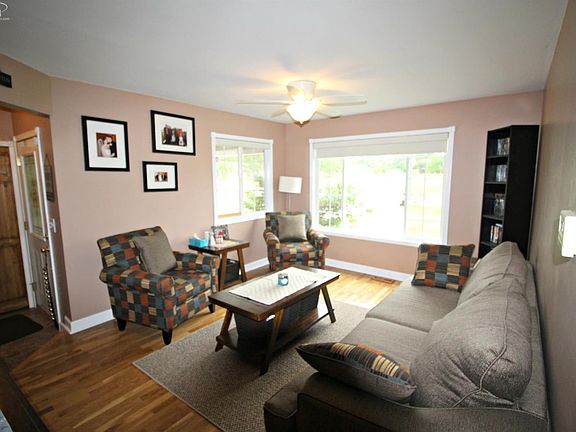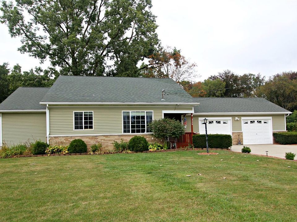 Stylish decorating throughout with numerous updates including stainless kitchen with bamboo floors and quartz counters. 2 full baths both remodeled. Newly refinished HW floors. Full basement, central air, attached 2 car garage, over 3/4 acre! Alarm system excluded with sale.
