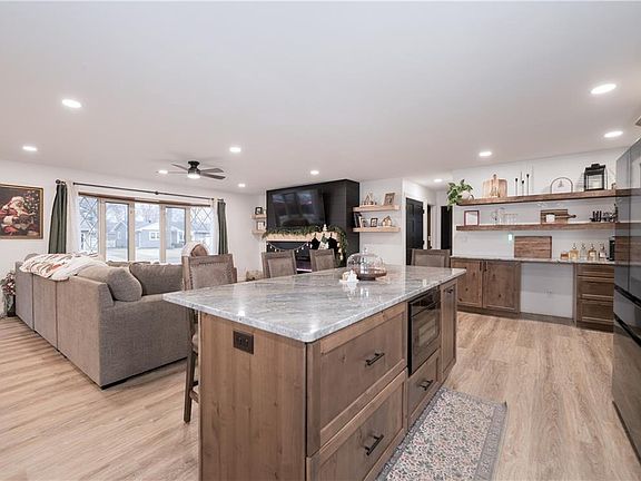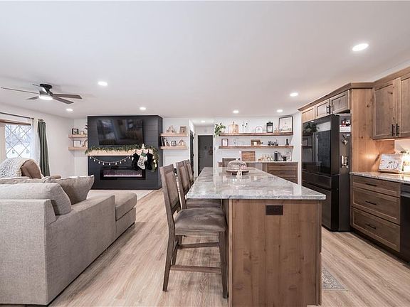 Step into this beautifully updated & well maintained home featuring a stunning newly remodeled kitchen with granite countertops, abundant workspace, and a large island perfect for gatherings. The open-concept main floor offers updated flooring, a separate dining area, and a modern linear electric fireplace that adds warmth and style. Enjoy peace of mind with extensive updates throughout, including roof, electric, plumbing, most windows, kitchen, bathrooms, AC, appliances, an invisible dog fence, Orbit irrigation system, and more. The lower-level bar and rec room create an ideal spot for entertaining, while the fenced backyard with a paver patio provides a private outdoor retreat. With generous storage and truly move-in-ready condition, this home delivers comfort, convenience, and impressive indoor and outdoor spaces for everyday living and hosting.