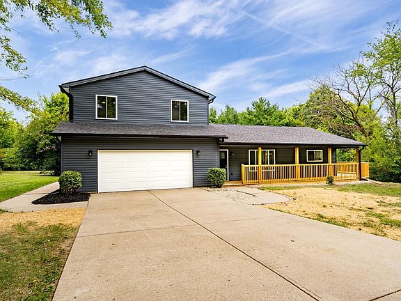 Beautifully renovated, down to the studs, farmhouse-style home in Springboro City Schools offering nearly 3,000 SqFt of living space plus an add'l 500+ SqFt unfinished bsmnt, ready to be customized to fit your vision. Nestled on just over an acre of wooded property, the home features a charming wrap-around deck ideal for taking in the peaceful setting. The gourmet kitchen is a showpiece w/quartz countertops, soft-close cabinetry, & all-new stainless-steel appliances. The oversized laundry rm includes a custom folding counter, while the expansive family rm boasts a built-in electric fireplace w/a custom mantel & views of the gorgeous backyard. A custom staircase leads to the spacious primary suite, highlighted by a private balcony, walk-in closet, tiled shower, & stand-alone soaking tub. Add'l features include an oversized 2-car att garage, large rear shed w/garage door, & thoughtful finishes throughout. A perfect blend of charm & modern elegance. Owners are licensed Real Estate Agents.