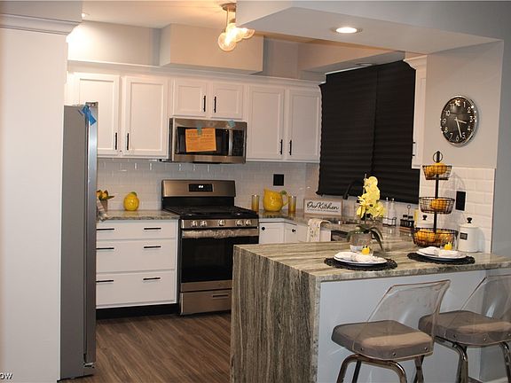 This over 3000 square feet house in Shaker Heights is a must see. It is a total REMODEL with modern updates, but it still maintains its vintage charm. The family room is a large room that will allow for entertaining and quality family time. There is a formal dining room that flows directly into the kitchen. The kitchen has all new stainless-steel appliances, a waterfall countertop, and eat-in kitchen. There is a home office and an all-season sunroom. The first-floor owner's suite is a relaxing oasis with a soaker tub and shower. The upstairs has four bedrooms with two Jack and Jill bathrooms. The third floor has an additional bedroom and bathroom. The basement is finished with new carpet-- this is additional space for gathering. This house is HGTV-ready with gorgeous landscaping and stellar curb appeal. Newly painted exterior and interior throughout, new, highly polished porcelain foyer floor, stunning sparkling chandeliers, and new ceiling fans. New carpet and new luxury vinyl through