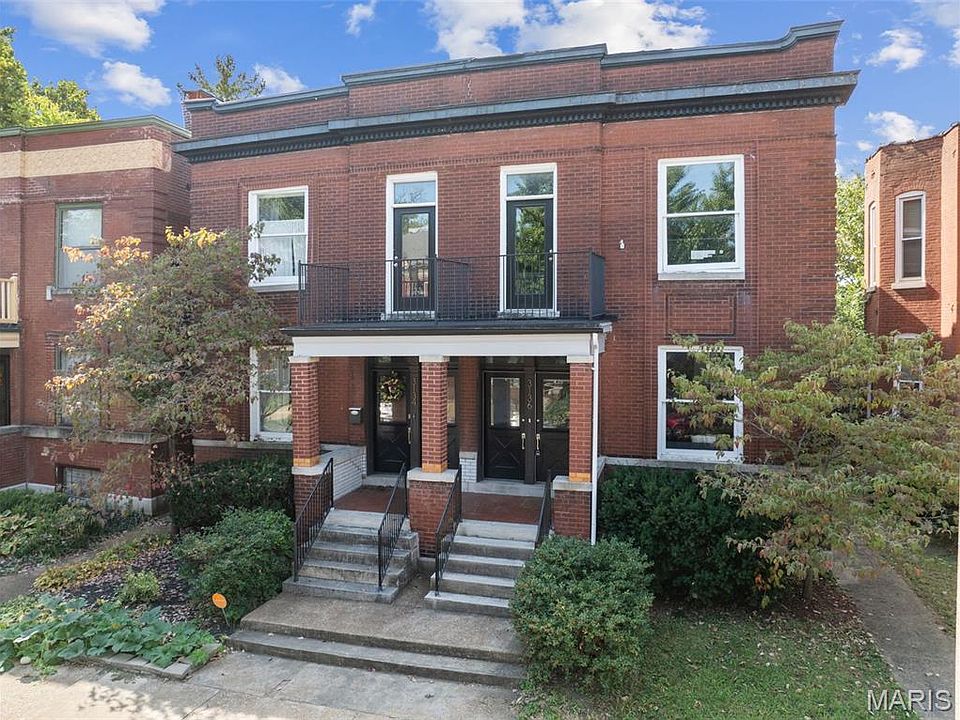 This 2,520 sf brick beauty in Tower Grove East delivers historic charm and modern updates in one of St. Louis’ most vibrant neighborhoods. A brand-new TPO flat roof (to be installed before closing, approx. $13k) adds peace of mind, while the rare detached two-car covered carport with remote-entry garage door makes parking effortless. Inside, soaring ceilings, oversized windows, and an open layout fill the home with natural light. The kitchen showcases granite counters, crisp white cabinetry with brass hardware, subway-tile backsplash, and a breakfast peninsula flowing into the family room with striking cobalt built-ins and access to a large rear deck and landscaped yard, ideal for entertaining. A formal dining room and elegant living room with decorative fireplace complete the main level. Upstairs, the primary suite offers a walk-in closet with custom organizer, double-bowl vanity, and spacious stand-up shower. Two additional bedrooms share a Jack-and-Jill bath, while a versatile loft opens to a front balcony perfect for morning coffee. A full walk-out basement provides abundant storage. Steps from Fox Park and minutes to South Grand dining and nightlife, this move-in-ready home blends timeless architecture with thoughtful upgrades for easy city living.