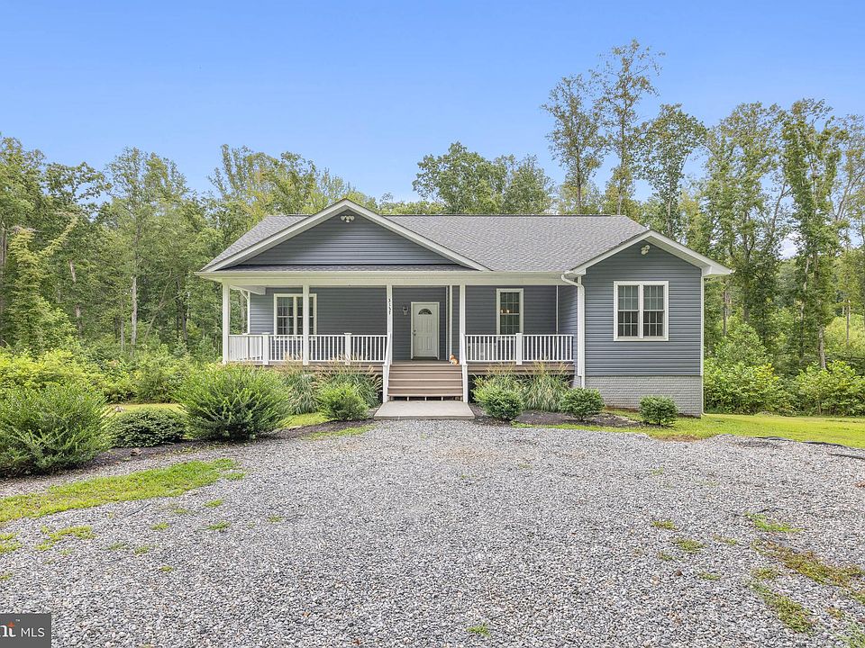 Discover your private oasis at Lake Anna! Step into this custom-built ranch home nestled on a sprawling 5.2-acre estate within the peaceful, wooded privacy of Blount’s Harbour at Lake Anna. Built in 2020, this thoughtfully designed home offers the perfect blend of modern elegance and tranquil retreat. Greet your guests from this rocking-chair front porch—an ideal spot for morning coffee or winding down at sunset. Inside, soaring 9-ft ceilings, open-concept layout, and luxury vinyl plank flooring span the main level. A striking stone-travertine fireplace anchors the living room, while the chef’s kitchen features granite countertops, a breakfast island with a cooktop, tray ceiling, pendant lighting, fresh 'lake vibes' paint colors and ample space for gatherings. Find tranquility in the oversized primary retreat boasting a walk‑in closet, deep soaking tub, and walk‑in shower. Two more graciously sized bedrooms and a full bath are tucked away on the main level, offering excellent separation and comfort . The walkout lower level offers an expansive family room, full bath, laundry room (plumbed for a mud sink), and a flexible storage/systems room—ideal for a theater, game room, or home office retreat. Surrounded by mature shade trees this setting feels like a permanent vacation. Enjoy community access to Lake Anna's public side and Blount Cove, including a shared waterfront. Equipped with electric heat pump, ceiling fans, energy-efficient windows, and smart storage, this home balances comfort with efficiency. Enjoy easy access to food and shopping centers—just minutes from Food Lion, local restaurants, wineries, and all that the Lake Anna area has to offer. Let's get you home - you will love it here!
