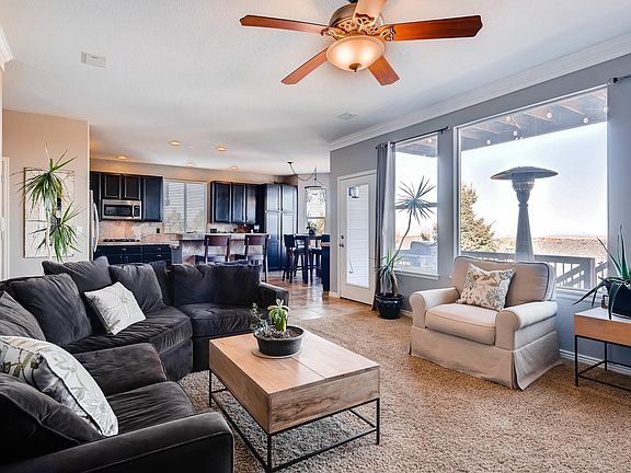 VIEWS! VIEWS! VIEWS! Enjoy mountain and city views from this spectacular home that is located on a quiet cul-de-sac. This home features an open floor plan perfect for entertaining. Gourmet kitchen with brand new large island, new granite countertops, stainless steel appliances, open to the family room, and access to the large deck with gorgeous views. Large dining room, office and guest room round on the main floor. The master suite includes a 5 piece spa like bath, walk in closet and amazing patio to take in the views and enjoy your morning coffee. There are 2 large bedrooms connected by a Jack-n-Jill bath, large bonus room and conveniently located second floor laundry. The finished walk-out basement boasts 2 additional bedrooms, family room, kitchenette, 3/4 bath as well as plenty of storage space. Large grass area and an additional concrete patio includes a built in firepit. This house has been very well maintained and is a must see!