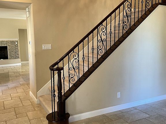 Beautiful house with grassy landscape in front. House is located near the front of Inspirada giving you quick, easy access to the community entrance, restaurants and shopping. Endless parks and play areas within walking distance of the house. Upgraded floors and beautiful island countertop. Spacious courtyard with outdoor ceiling. Balcony access through Master Bedroom. Master Bedroom offers a quaint retreat for tranquility or office.