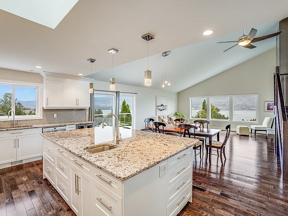 Welcome to 3137 Vector Drive, a stunning luxury home in Lakeview Heights that offers an exceptional lifestyle across three levels. Set on a spacious 0.46-acre lot in a tranquil cul-de-sac, this meticulously renovated home features nearly 4600 SQFT of elegant living space with breathtaking lake views. Updated in 2016, with a new roof in 2020 and upgraded windows and sliding doors in 2021, this move-in ready home showcases quality craftsmanship. The main level boasts a chef's kitchen equipped with high-end stainless steel appliances, a large solid granite island, and custom cabinetry. Elegant solid Ash hardwood floors and a custom staircase enhance the dining and living areas, which feature 14' vaulted ceilings framing picturesque lake views. The family room includes sliding doors that lead to a spacious balcony, ideal for outdoor entertaining. Ascend to the vaulted 878 SQFT loft area, featuring a private bedroom and wrap-around balcony with tranquil views. The lower level offers three additional bedrooms, a 4PC bath, a full kitchen, and a vast living area opening to a spacious sundeck—perfect for rental income or multi-generational living. Outside, enjoy the pool sized yard with fruit trees, gardens, and a hot tub. Located within walking distance to wineries and minutes from beaches, schools, and restaurants, this home embodies the best of Okanagan living, ready for you to embrace!