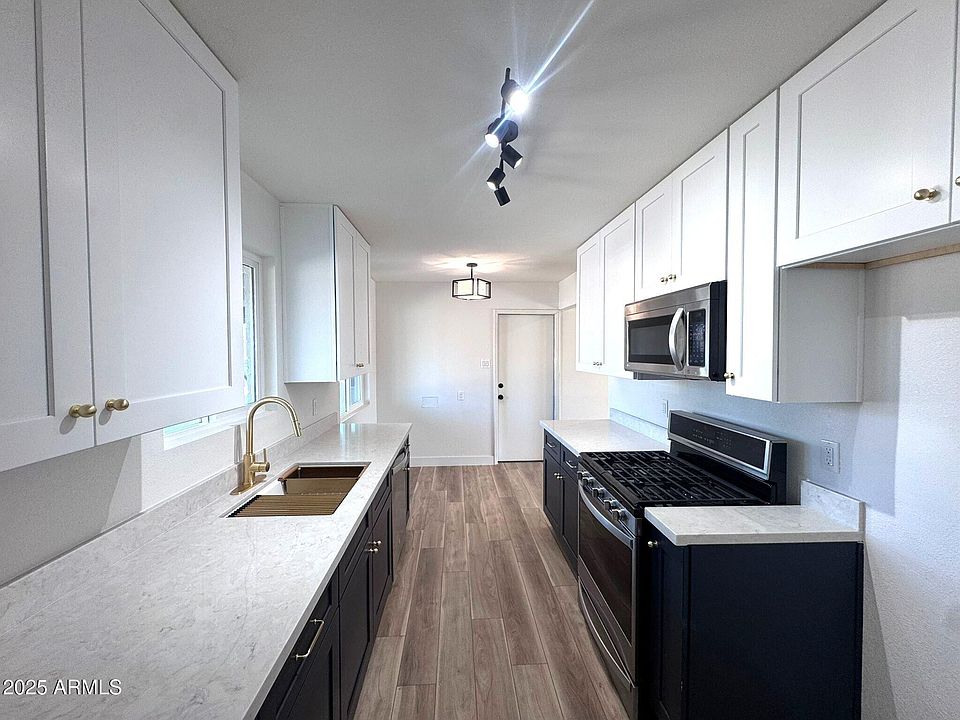 Beautifully remodeled single-story home on a generously sized lot, showcasing premium finishes and contemporary design. Recent upgrades include BRAND-NEW KITCHEN, BATHROOMS, FLOORING, and PATIO COVER. Inside, the kitchen is fully updated with brand-new shaker cabinets, stainless steel appliances, and quartz countertops. Throughout the home, you'll find new vinyl wood flooring and new carpeted bedrooms. Enjoy the spa-like bathrooms, thoughtfully upgraded with high-end shower systems, framed mirrors, shower niches, and custom vanities. The expansive backyard provides endless possibilities for outdoor living, entertaining, or future customization.