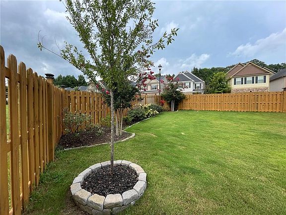 This beautiful home features 4 bedrooms plus a loft area, perfect for a den or office. Formal dining room and an additional eating area off the kitchen. Large kitchen island, granite countertops and 42" cabinets. Walk in pantry so there is plenty of cabinet space in your kitchen. Living area has a fireplace and there is LVP flooring in all the downstairs. Upstairs you'll find a huge owners suite with large walk in closet. The master bath has a soaking tub and separate shower with double vanity. There are 3 additional bedrooms and an additional bathroom upstairs. The home is situated on a corner lot with a green space next to the property making the lot very private. The big back yard is completely fenced. This quiet neighborhood is conveniently located between I 985 and I 85 and 1 mile from the Mall of Georgia.
