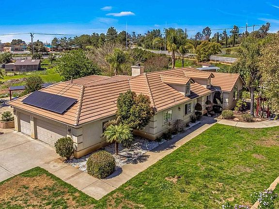 Entertaining Offers Between $1,000,000 and $1,200,000. Don't Miss this Amazing Opportunity of possibly assuming the 2.55% VA Mortgage Rate and Acquiring this 2.25 Acre Everyday Staycation Sanctuary with an ADU and Solar on the main home (PPP at a fixed $179 mo.). Whether you're hosting a barbecue, enjoying the hot tub, tranquil fountains, fire feature, outdoor sit at 6-person bar/BBQ island or simply taking in the vast landscape, this property has it all. For those with equestrian interests, the barn, inside stables, fenced coral and horse-permitted zoning offer endless possibilities. Horse Barn/Stable has 3 stalls and 2 tool/working/storage rooms. Parking is a breeze with 15+ spaces, private drive to the barn, as well as a RV parking structure. Don't miss this Expansive Single Level 4-bedroom, 2 bath, plus bonus area home with a 2.5 car garage, as well as a detached ADU Studio with Large Bath & Interior Laundry & Walk-in Closet is perfect for meeting yours and your guest's needs. Step inside to discover a welcoming atmosphere with spacious rooms and modern conveniences. The open concept living area flows seamlessly making it ideal for entertaining or simply relaxing. The gourmet kitchen with tons of storage cabinets/space, hard surface floors, updated modern bathrooms and several optional bedrooms affords the buyer(s) many different options to create a home best designed for their living situation. Large primary bedroom with a huge custom walk-in closet and bath. Enjoy your private corner lot on a cul-de-sac but with short drives to schools, places of worship, parks and Harrah's Southern California Resort. Also, a reasonable commute to the Beach (29 mi), Camp Pendleton (35 mi) and 32nd St. Naval Base (39 mi).