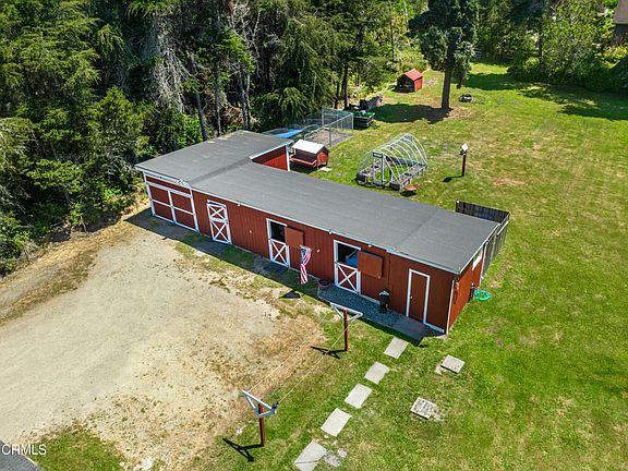 Enjoy the simple pleasures of country coastal living in this pristinely kept homestead. Just shy of 1 full acre, this property exudes the pride of ownership and effortless enjoyment. The expansive and meticulously maintained property welcomes your arrival with mature apple trees, clean cut grass, and a ''stagecoach era'', western style, stable that has been converted into a secondary living unit which includes an outdoor shower with an on demand water heater. The main home offers an immaculate 2 bedroom, 1 bath, house with an open concept floor plan and den for possible office or future third bedroom. The multiple sliding glass doors are set up for letting the outdoors in! Enjoy the wraparound deck and privacy fencing for full sunshine during the day and effortless BBQ cookouts at night. Delight yourself in collecting farm fresh eggs from your own neatly kept chicken coop and picking home grown vegetables from the garden area. Topped off with a garage, tool shed, and generator, this home is the complete package with lovely neighbors, tucked away at the end of a private road.