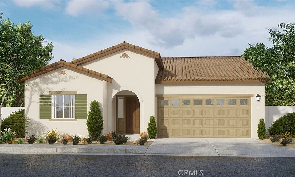 NEW CONSTRUCTION and QUICK MOVE-IN in Winchester - SOLAR INCLUDED and NO HOA!! - This 1,576-square foot single-story home with California Spanish façade and a LARGE BACK YARD space has 3 bedrooms and 2 full bathrooms. The Island kitchen with island eating area has Bianco Tiza QUARTZ counters, built-in stainless-steel appliances and a pantry closet. The interior comes complete with Crisp White shaker-style cabinetry throughout, lots of included recessed lighting, and upgraded flooring with plush carpet in bedrooms, closets, and stairs, and vinyl in main living areas. The primary bedroom has an ensuite bathroom with double sinks and a walk-in closet, and there are 2 additional bedrooms, a full bathroom, and laundry room. There is also a direct-access 2-car garage PRE-PLUMBED for an electric car! This truly modern home has all the Smart Home features you would expect and is LANDSCAPED and IRRIGATED in the front yard. The Juniper community is situated close to park and freeway access. We anticipate an December move-in and we can't wait to welcome you Home!!