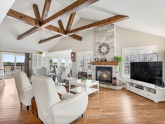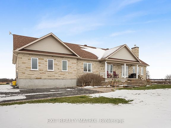 OPEN HOUSE Nov 23, 2-4pm. Prepare to fall in love with this breathtaking, magazine-worthy bungalow, sitting on just shy of 50 acres perfectly designed for comfort, style, and multi-generational living. From the moment you arrive, the charming front porch and stunning curb appeal set the tone for what awaits inside. Step into a sun-filled, open-concept main level where natural light pours through every window and warm wood-beam accents elevate the space with timeless character. The chef-inspired kitchen offers endless cabinetry, a sleek sit-at island, and a seamless flow into the dining area-complete with patio doors opening to an exceptional back deck overlooking peaceful farmer's fields and pure countryside serenity. The living room is a showstopper with its striking stone fireplace, while the inviting family room provides the perfect spot to unwind. The luxurious primary suite feels like a private retreat, featuring a spa-like 5-piece ensuite and a spacious walk-in closet. An elegant 3-piece bath and a bright home office complete this impressive level. The lower level is equally extraordinary. With soaring ceilings and a stunning walk-out design, the in-law suite offers unmatched comfort and independence. It boasts a large, beautifully appointed kitchen, a bright open living room, two generous bedrooms, and a modern 4-piece bathroom-ideal for extended family or guests, and even includes a dedicated doggy spa. Outside, your private oasis awaits. Enjoy a sprawling deck perfect for entertaining, a relaxing hot tub under the stars, and unobstructed views that create a sense of escape without sacrificing convenience. An attached 2-car garage adds practicality to this dreamy property. Stylish, versatile, and incredibly inviting-this exceptional bungalow delivers the lifestyle you've been searching for. Homes like this don't come around often.