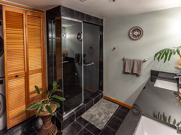 Main bedroom with king bed in a luxury condo loft shared with a local artist who uses the space as an office and studio during business hours. The condo is on the 2nd floor of a historic building, with an elevator that is accessible from the rear parking lot. Unit includes a private rooftop patio. All new appliances as of 2020, including in-unit laundry, and steam shower. Located in one of Detroit's most desirable neighborhoods, lower Midtown/Brush Park on Woodward avenue. Steps out the front door get you to the Q-line, a Mogo station, blocks from the sports arenas, and a slew of food & beverage options like James Oliver Coffee, Grey Ghost, Bar Pigalle, Detroit Shipping Co, Pho Lucky, Elephant & Co.
