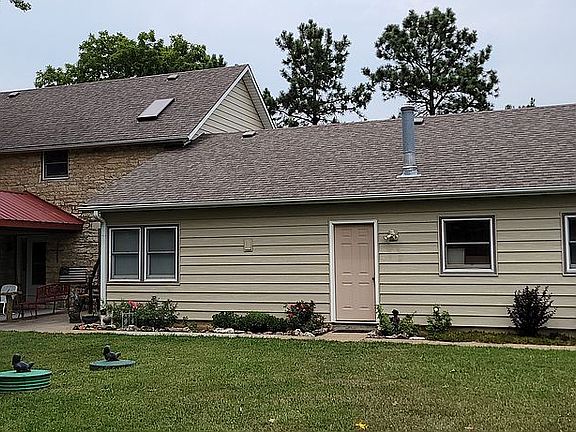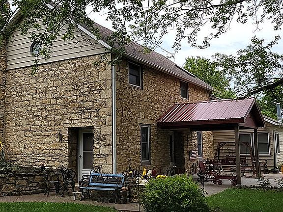 The original structure was a stone barn. The remodel and additions were done in 1995, when we bought the property. This is a very unique home with very peaceful surroundings, including many mature trees and a spring fed pond just yards away from the house, stocked with fish. It sits on 8 acres and is located just outside of Alma, KS (the City of Native Stone) in the Flint Hills. Alma is about halfway between Manhattan and Topeka KS, which is about a 20 minute drive to each. There's an oversized 2 car attached garage, also a 20X25 carport, a 12X50 out building, a 12X36 lean to, and a 10X15 shed. Rural water on the inside and out, as well as well water outside. Central heat and air- high efficiency furnace is about 7 months old, air conditioner about 5 years old. New septic tank with laterals (about 3 months old). Open floor plan with large kitchen. The great room, kitchen, upper bedroom and loft is a part of the original barn structure. Please click on the Virtual Tour for more photos and an important message.