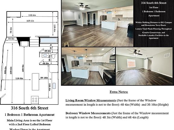 Now Accepting Applications for a Beautiful, Recently Renovated, 1st Floor Main Living Area with a 2nd Floor Lofted Bedroom, 1 Bathroom Apartment at 316 South 6th Street, Within Walking Distance to ISU Campus and Downtown Terre Haute