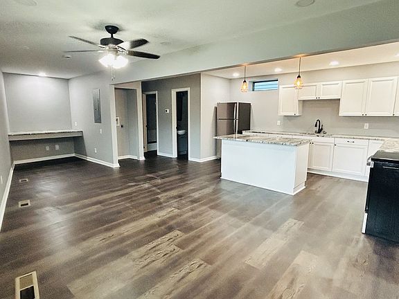 This Beautiful, Newly Renovated Apartment Features Luxury Vinyl Plank Flooring throughout, Ceiling fans, Recessed Lighting, A Granite Top Built in Desk in the Living Room, Granite Countertops in the Kitchen (Refrigerator and stove are provided). Newer Windows, Larger Window in the Living Room for Natural Light and a Downtown view.