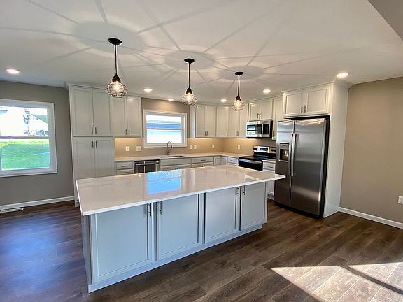 Check out this newly remodeled ranch style home with a golf course view! This 3 bedroom, 3 bathroom home features a custom kitchen with quartz countertops, laundry hook-ups on both levels and a 3 stall garage. This home is move-in ready. Call or text 563-794-1947 to see it today!
