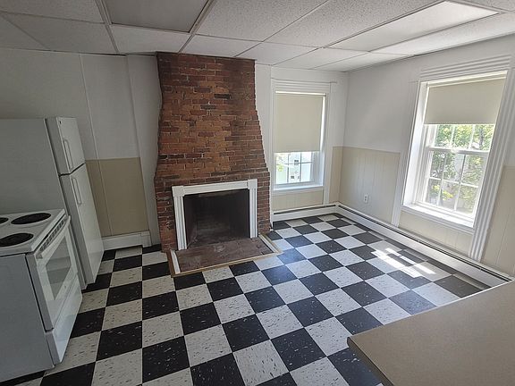 Spacious 3rd floor 1 bedroom in 4 story Brick walk up. Each room has 9 foot ceilings. Unit has living room, 1 large bedroom plus has small office or walk in closet off of the BR, full bath and large eat in kitchen which has exposed brick fireplace for nice asethic. Price is $1300 for 1 person or $1375 for double occupancy with heat, water, sewer, snow and lawn included. Also has coin op w/d in building and spacious parking area with 1 off street parking spot available and 2nd spot could be available if needed. Great location walking distance to downtown, on bus route and close to all Bangor offers. Available Now! Visit RentBangor. com
