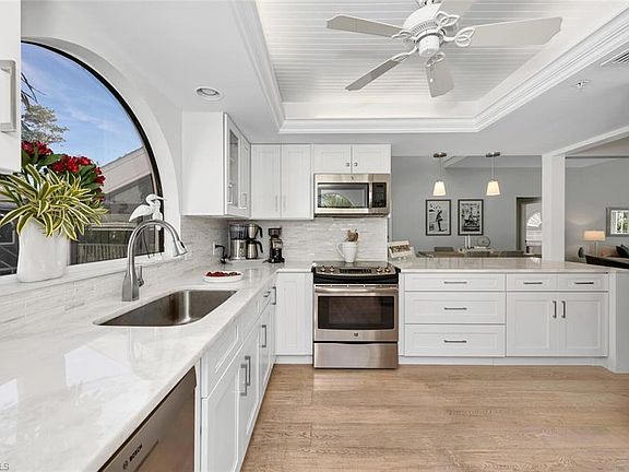 Magic of Olde Naples .. Amazing 3 Bedroom Updated condo with loft and enclosed lanai for wonderful living space at amazing price Rarely available condo with light beachy vibes and timeless quality featuring European hardwood white Oak wide plank flooring, Crisp white kitchen with quartzite and newer stainless appliances with light spilling in from unique windows. Split bedrooms are perfect for guests' privacy. Spacious primary bedroom with ensuite has wonderful California closets and beautiful marble bathroom. Loft with a 360 degree view of 3rd St. can be Office, yoga studio or 4th Bedroom Single car garage Community Pool Come live the city life with iconic Saturday morning Farmers Market on 3rd St., Parades, Art Shows, Great shopping and Amazing restaurants and... a beach. 3 blocks away Come to Paradise