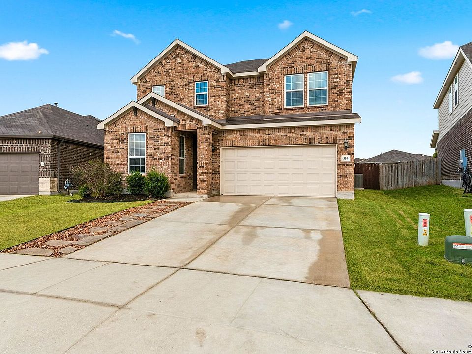 Welcome to Southglen! This inviting two-story home offers a smart, open layout designed for both comfort and convenience. Downstairs features an open-concept living area with tile flooring throughout, a cozy corner fireplace, and a dedicated front office perfect for working from home. The spacious kitchen offers a gas cooktop, abundant cabinet space, and plenty of natural light. A handy micro office off the kitchen helps keep life organized. Upstairs, you'll find three spacious bedrooms, including a large primary suite with a relaxing garden tub, separate shower, and generous walk-in closet. A walk-in laundry room is conveniently located between the bedrooms, and a loft/game room provides flexible space for movie nights, playtime, or a home gym. Step outside to a large backyard with a covered patio, perfect for evenings outdoors or weekend BBQs. Residents of Southglen enjoy access to a community park and pool for year-round fun. Ideally located just 1.5 miles from Cascade Caverns, less than 5 minutes to H-E-B, and about 10 minutes from both downtown Boerne and San Antonio, this home combines small-town charm with big-city convenience