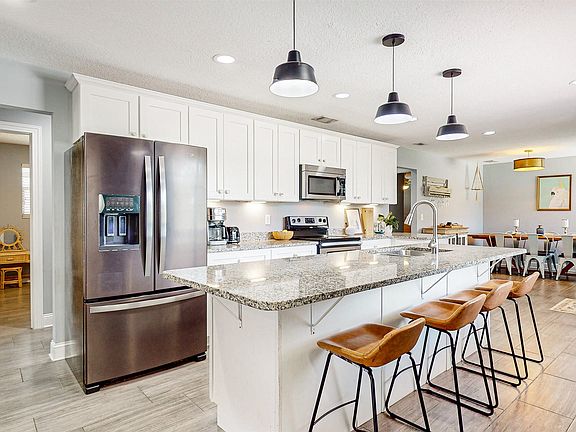 Indulge in the ultimate outdoor living experience with the enchanting backyard Tiki Bar and Summer Kitchen that perfectly complements the updated residence in Davis Shores. Relax and revitalize in your fully enclosed backyard, surrounded by loved ones eagerly anticipating your signature concoctions at the bar. Conveniently situated for a leisurely stroll to Downtown St. Augustine, including the effortless enjoyment of the Night of Lights, and the numerous amenities of Davis Shores. Explore nearby restaurants and bars, such as the Conch House, without the hassle of parking. The modern finishes provide a neutral backdrop for homeowners to infuse with their individual style, while the timeless allure of the brick façade adds a touch of sophistication. Culinary enthusiasts will appreciate the well-equipped open kitchen featuring stainless steel appliances, elegant white shaker cabinets, and polished quartz countertops. Engage with loved ones at the welcoming breakfast bar while preparing meals. During cooler months, cozy up by the wood fireplace with a favorite book and warm beverage. This residence is a perfect revelation for any family.