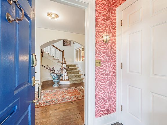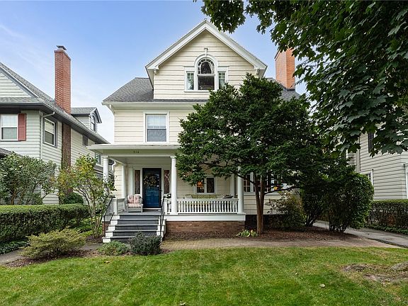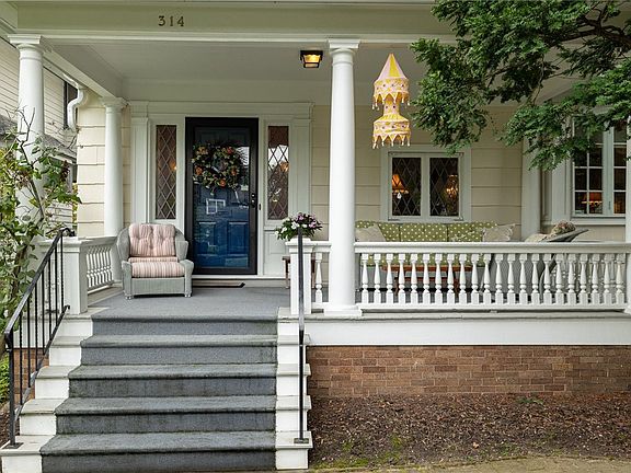 Welcome to 314 Barrington! This grand home, featuring five bedrooms and three and a half baths, boasts magnificent architectural details throughout. Experience a warm welcome as you step onto the charming front porch, leading into a beautiful foyer and an elegant entryway. This home exhibits a grand staircase with original stained-glass window detailing, a spacious formal living room with a convenient gas fireplace adds warmth and ambience to the room. The formal dining room complemented by a built-in corner cabinets and original Butler's pantry, perfect for entertaining. The generous eat-in kitchen, which overlooks a stunning backyard, features new stranded bamboo flooring, stainless steel appliances and a newly added pantry area with built-ins. Both front and back staircases lead to the second floor, housing four generous bedrooms and two full baths. The third floor reveals a dramatic primary suite with a full bath and cathedral ceilings. The professionally landscaped backyard w/private patio & awning, two-car detached garage with a new door and openers. An extensive list of improvements is attached to the listing. Negotiations are delayed; all offers are due by 10/2 at 1:00 pm.