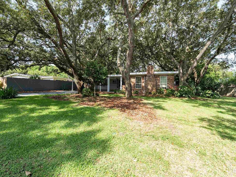 Gulf Breeze Proper. 3-bed, 2-bath mid-century modern home (built 1958) offers 2,116 sq ft of living space on nearly half an acre — a rare find in the heart of Gulf Breeze. Classic details blend with thoughtful updates, including an updated kitchen and baths, hardwood and carpet flooring, central HVAC, and a cozy fireplace. The layout features a sunroom plus a bonus rec room or second living area, giving you options for entertaining or relaxing. Outside, a 2-car carport adds convenience, while the detached, air-conditioned office provides the perfect setup for working from home, creative projects, or hobbies and huge workshop for gardening or storage. With masonry/stucco & brick exterior, this property delivers durability and timeless style. Families and out-of-area buyers will appreciate the large lot, Gulf Breeze Elementary/Middle/High School zoning, and proximity to Pensacola, the beach, and everyday amenities. Move-in ready with mid-century charm, this home is positioned to be both practical and inspiring.