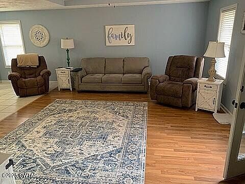 Deep farm-style sinkBeautiful laminate flooringNew granite countertops