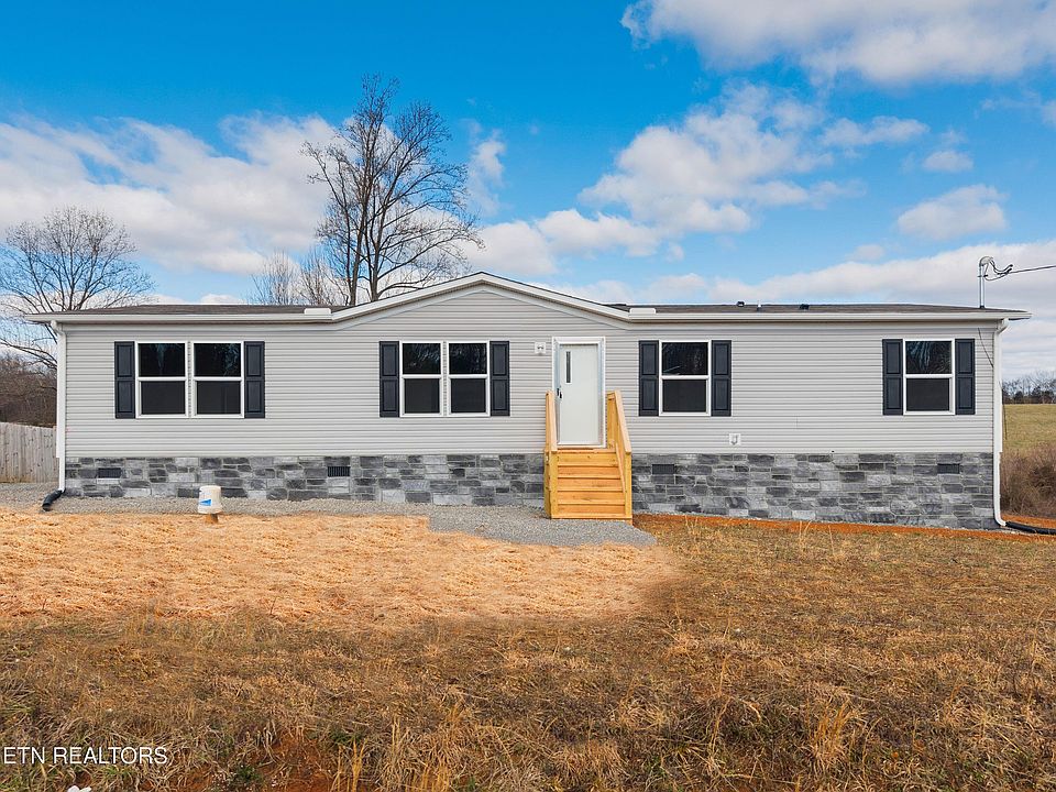 Brand New Double wide on an acre of land! 3 Bedrooms (has a fourth or ''bonus'' room) and 2 bathrooms. Move in with less worries since everything is brand new. It was put on a permanent foundation so it should qualify for most loan types. With an acre of land, you have room for building a garage, having, animals, etc. 45 Minute commute to Knoxville, and under an hour to the Great Smoky Mountains, come check it out. Owner/agent. Buyer to verify any information. Some drone footage used.