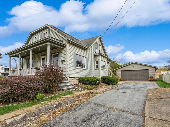 Showings start 10/24/25 // SPACE GALORE & UPDATED JUST FOR YOU! Be greeted by the covered front porch before stepping into this 4 BEDROOM (Hard to find!) home w/main flr bedroom w/hardwood flrs. Your EXPANSIVE living room stretches across the front of the home w/newly revealed HARDWOOD FLOORS! Entertain in the formal dining area w/ built-in hutch & bright picture window (hardwood under current flr), then cook in your eat-in kitchen w/refaced oak cabinets & new LVP floors. Main floor bath is updated with half-tile walls. UPSTAIRS, enjoy a landing, 3 spacious bedrooms, and new LVP floors. Outside: a deep lot near downtown, schools & parks, an extra-deep garage with rear door, and a large backyard deck - COOL! Updates: FURNACE OCT '25, PAINT & MORE! HOME IS PRE-INSPECTED! // 48 hr bind