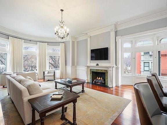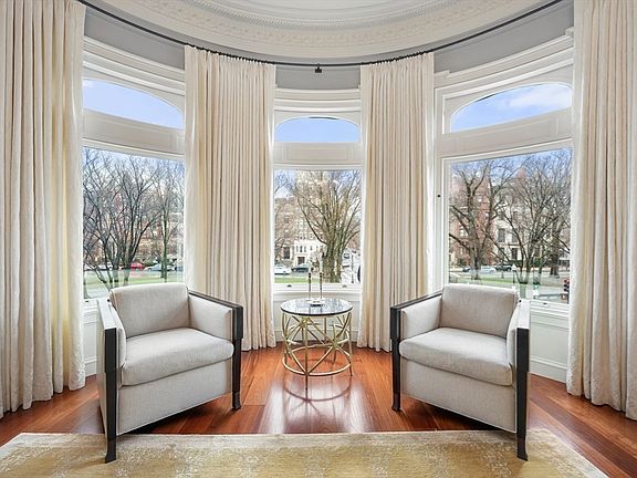 Welcome to The Burrage Mansion, celebrated as one of Commonwealth Avenue's most distinguished addresses in Back Bay, this landmark corner with 55 feet of Frontage on Commonwealth Ave, offers the pinnacle of single floor living with the utmost attention to design and detail. Meticulously renovated in 2023! This home greets you with an Italian marble foyer, leading into lavish living and dining spaces, complemented by a chef's kitchen with Statuario marble counters and a bespoke La Cornue oven with adjacent family room. The primary suite is a sanctuary of luxury, with a marble bath and a spacious custom walk-in closet. Features: New Brazilian Mahogany Floors, updated Marble Baths, and beautiful fireplace mantels, comprehensive system upgrades such as hidden ceiling speakers, this residence combines timeless elegance with contemporary amenities. Includes two garage spaces, private storage, and direct elevator access, making this a rare gem in the heart of Back Bay.