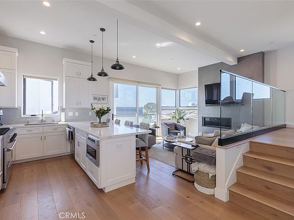 Masterfully designed by JF Carlson Architects, is ideally situated in the picturesque 300 block, just a stone's throw from the beach. This detached three-bedroom residence offers a blend of unique spaces, capturing both city and ocean views. A standout feature is its rare private entrance, complemented by convenient side-by-side parking for two cars. The home's interior boasts a spacious layout, accentuated by hardwood floors, abundant natural light, and towering ceilings. The state-of-the-art kitchen is a chef's dream, featuring premium appliances, extensive cabinetry, a six-burner stove, a microwave drawer, and a generous breakfast bar, perfect for casual meals, alongside a formal dining space for hosting. Outdoor entertaining is a breeze with a cozy patio and a primary balcony designed for taking in the views. The luxurious master suite offers serene ocean views, a cozy fireplace, a secluded patio, and an en-suite bathroom adorned with exquisite marble, a deep soaking tub, a walk-in shower, and dual walk-in closets. Embrace an exclusive lifestyle on a private street within the village, mere steps from pristine beaches, gourmet dining, boutique shopping, lush parks, and Fashion Island.