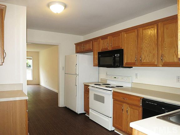 One level duplex in Carrboro. Living combines with dining with ceiling fan. Kitchen includes appliances, pantry & laundry closet with washer & dryer. Wood style plank floors in living, dining, kitchen. 2 bedrooms both with ceiling fans, carpet & cable hook up. 1bedroom has private bathroom. 2nd full bath completes home. Patio /courtyard in back. Parking in front. 1 indoor pet considered with fee and approval. $15/mo filter fee.