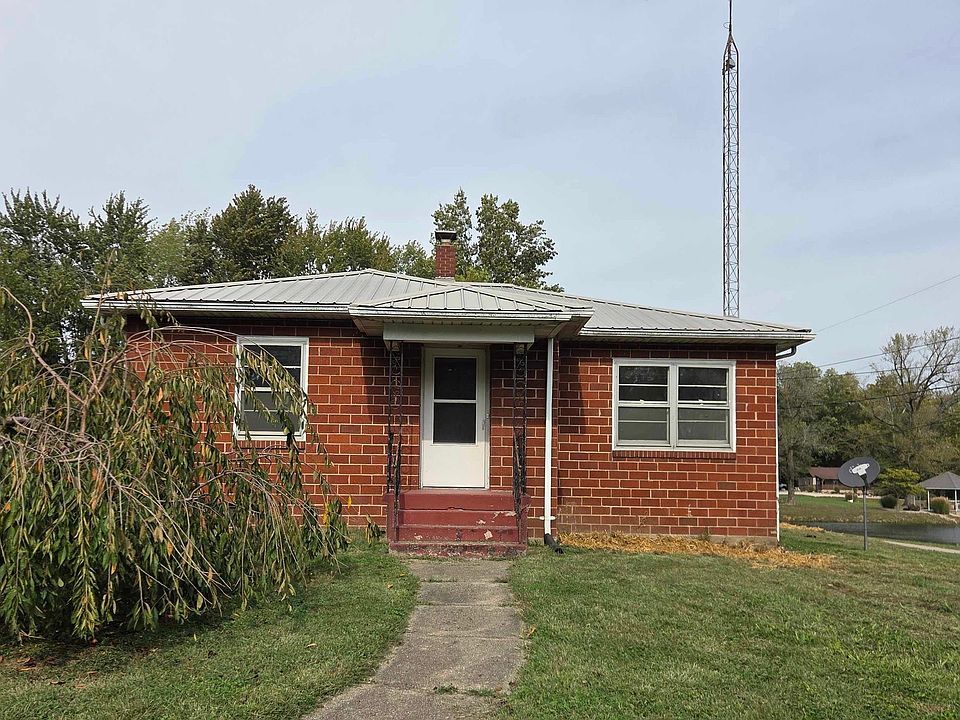 All-brick, lake-view home for sale in Odon, Indiana! Located on E. Elnora street, this home sits across the road from Odon's "Lions Club Lake" where you can enjoy affordable fishing, relaxing, and other recreation as well. Featuring an ATTACHED 2-CAR GARAGE, this 2 bedroom, 1 bathroom home also features a full basement which can be utilized in a variety of ways. The floor plan provides a full living room, full dining room, or utilize the eat-in kitchen to have a whole spare room on the main level. Seated on almost 1/2 an acre, lawn offers both concrete patio seating area with a view of the lake, and a spacious back yard is a great size to be enjoyed in a variety of ways.Home is priced perfectly for either a starter home, investment property, or ready for your custom updates to make it your forever home!