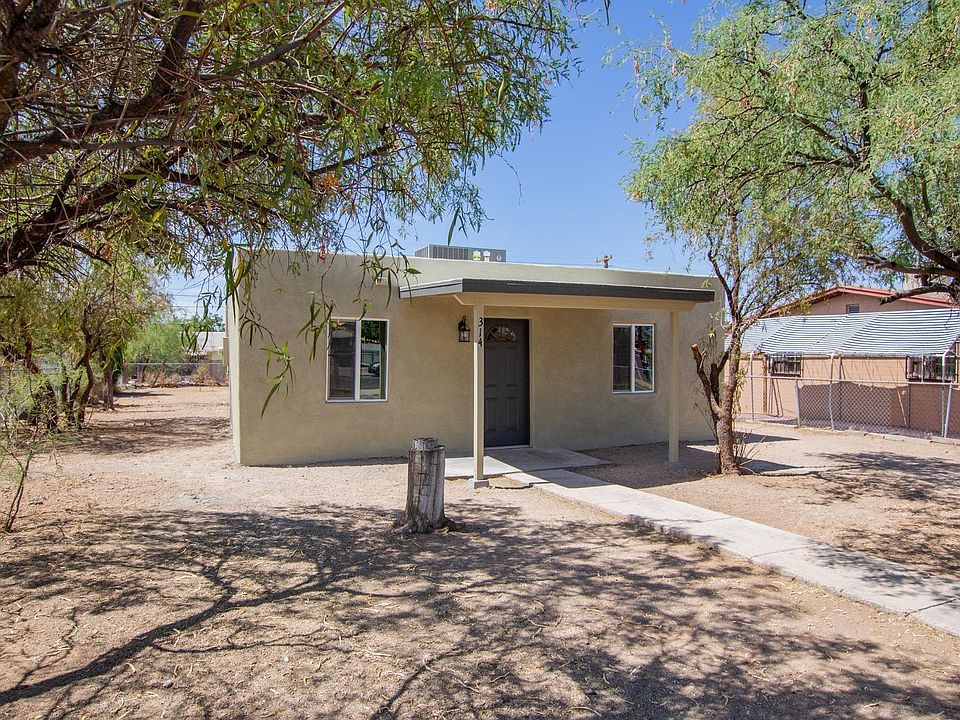 Lovely 2 bed 1 bath home in large lot. All two-tone interior and exterior paint. Fully remodeled kitchen and bath. Brand new kitchen cabinets with new laminate countertops and new plumbing fixtures. Seller will install new electric range, OTR microwave, and dishwasher prior to closing. New vanity, new mirror and new plumbing fixture in bath. New tile surrounds with deco accents in shower. Plush new carpet & pad in both bedrooms. New brushed nickel light fixtures, ceiling fans, and door hardware throughout. Band new AC cooling system (heat pump) and new electric water heater installed with permits. Fully fenced lot with mature trees in front and back. Move in ready, come see it today! Agent/Owner.