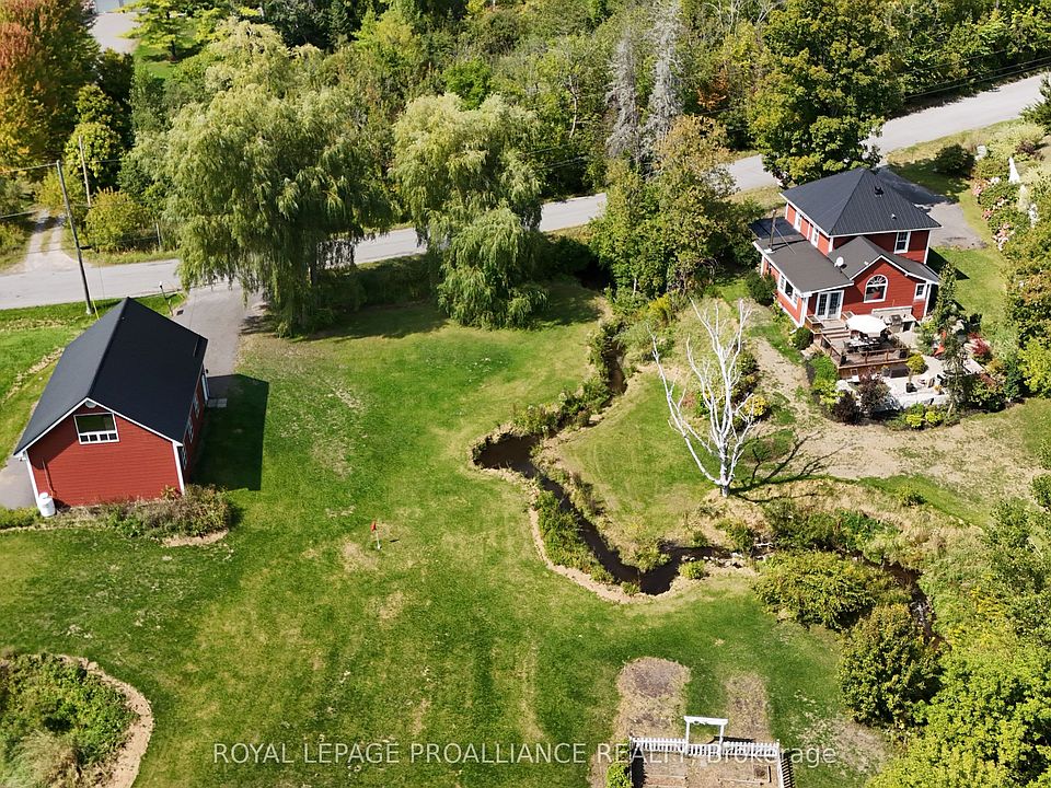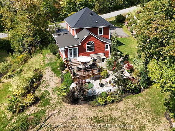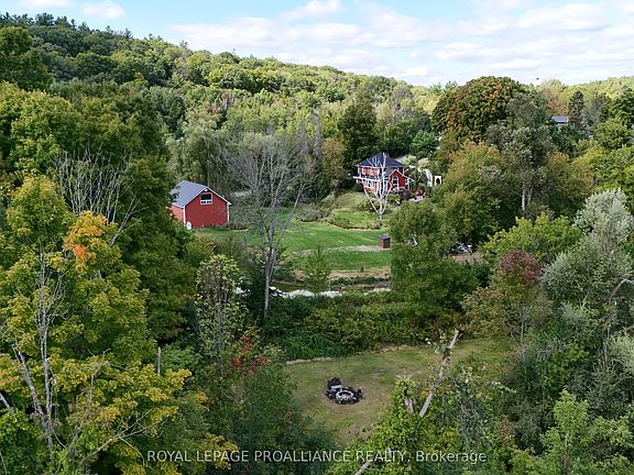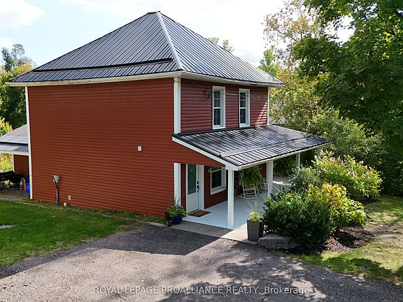Nestled in the drumlins North of Belleville, just 35 minutes from PEC, lies Halloway, a hamlet steeped in history and rural charm. Once a bustling stop along the Grand Junction Railroad, it was home to general stores, mills, and artisans. Today, that same sense of heritage endures in the character homes that dot the landscape. Here, the land rises and falls with striking elevation, offering dramatic views and a rare sense of seclusion so close to the city. Set on more than 2 acres of this countryside is a circa 1920 farmhouse, a timeless two-story that radiates warmth. A welcoming wrap-around porch invites you to pause and take in the views, while a gentle creek winds through the property, joined by a tranquil pond. At the rear, a tucked-away fire pit creates the perfect spot for campouts or evenings beneath the stars. Inside, rustic details pair beautifully with modern touches. Exposed beams, stone accents, and wood plank flooring bring charm throughout. The open-concept main floor flows easily from living and dining into a generous kitchen with a massive island, vaulted ceilings, and a cozy wood-burning stove. Step out to the multi-level patio - an entertainers dream with built-in BBQ, perennial gardens, and even a playful tee box for practicing your short game. The main floor also offers a den or office connected to a spa-inspired bath with Jacuzzi tub, glass-and-tile shower, and heated floors. Upstairs, three bright bedrooms continue the inviting feel, with the primary enjoying semi-ensuite access. A 40' x 26' heated detached garage with 11' ceilings, loft bar and lounge, its own driveway, and separately metered 200 amp service is ideal for a contractor, hobbyist, or home business, with potential for a secondary dwelling. Just two minutes away, the Trail of Two Lakes links Belleville to Madoc, offering miles of hiking, biking, snowmobiling, and ATV adventures. Recent updates include a new septic system (2020) and a wood stove chimney (2021).