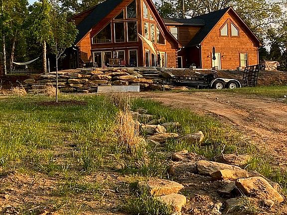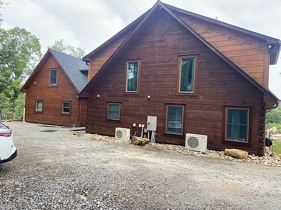 Visit this rustic chic log home on 20 acres with a small 14 feet deep pond perfect for fishing and beautiful creek at back of property. Home has master on main with in-law-suite connected on other side. Two bedrooms up with connected bathroom and a large seperate bedroom with seperate bathroom with sitting room and it's own washer dryer and fridge. Don't forget third level loft perfect for storage or an office with a great view.