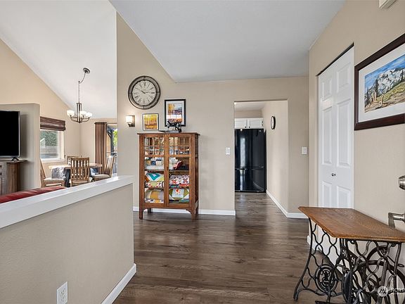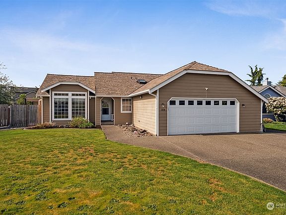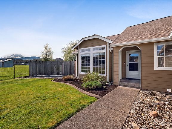 New listing in Orting, home of the cutest downtown, and never ending trails! Delightful one level home with mountain view. Great opportunity for downsizing or first-time buyer. Thoughtful layout with 3 bedrooms, 1.75 baths, vaulted ceiling in living room, separate dining room and kitchen with view to the backyard and deck access from slider. Newer laminate flooring and carpet, light fixtures, 6 panel doors and custom gas fireplace. Large primary bedroom with attached ¾ bath and walk-in-closet. Utility room with abundant storage. Great outdoor space with large deck, garden beds and 8x10 shed that stays. RV Parking on BOTH sides of the home and 2 car garage. Tucked away on a quiet street. 10 year old roof and 2-year-old furnace.