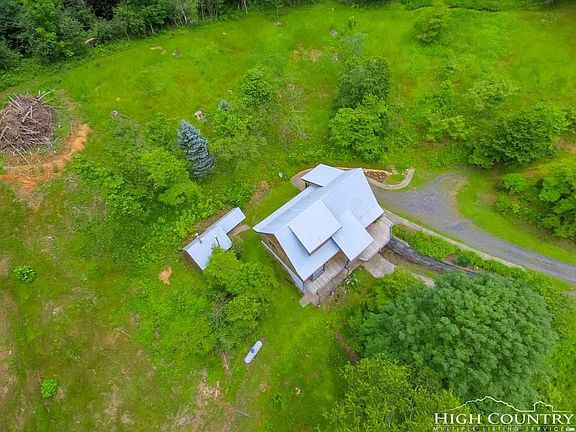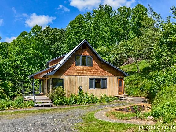 A "True Handcrafted Mountain Home" custom built with modern functionality and design. A peaceful 3.5 acre private setting - walking distance to a stocked trout stream. Close to Grayson Highlands State Park, the North Fork of the New River, and 20 minutes to W. Jefferson. This quality home was built with pure craftsmanship in every detail. Exterior is vertical poplar harvested from the land. The gables and dormers showcase wonderful unique cedar shingle work creating line art. Almost all woodwork; floors, doors, cabinetry, and bathtub were designed & custom built by the owner. The wood floors are curly maple with wormy chestnut used for the walls, kitchen cabinetry and most interior doors. The bath on the main level is a must see Work of ART. All bedrooms offer built-in cabinetry and large windows. A floating custom built steel staircase leads to a 2nd floor office space with built-in desk & storage, bath & 3rd bedroom. The lower level offers a garage/laundry and a space for a hobby/game room or workshop with a walk-out patio. Engineered passive solar design complimented with radiant floor heat. Electric furnace & hot water stove will keep home economically warm & cozy year-round.