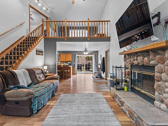 Rustic meets modern in this striking home on an acre lot in beautiful Palmyra. You'll love its spaciousness, enhanced by the open layout, neutral decor & soaring vaulted ceiling. The gorgeous, durable walnut floors are a showstopper & the natural fireplace provides cozy evenings. The cook's kitchen features a butcher block island & plentiful cabinets. Adjacent to the lovely master suite you'll find a bonus XL loft/office. The open, dry basement is ready for your ideas or to store your precious possessions. Take in nature's beauty that surrounds the home via the plentiful windows/patio door. Outside you'll find an expansive deck, perfect for relaxation or entertaining. The seller has loved living in this quiet community w/friendly neighbors and is sad to leave but is moving out of the area