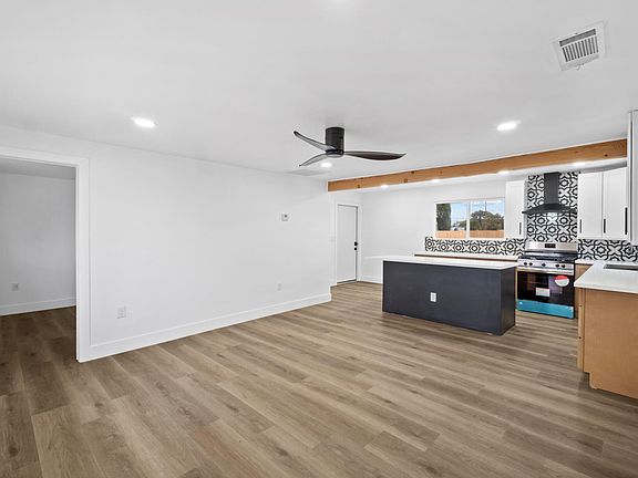 This updated 2-bed, 2-bath home combines modern style with functional living. Open living spaces flow seamlessly into one another. The beautifully upgraded kitchen, featuring new appliances, sleek hardware, soft-close cabinets and drawers, and an eye-catching backsplash. The spacious center island provides the perfect divide between the kitchen and living room. The guest bedroom is conveniently located off the living room, with the guest bath just around the corner. A cozy indoor laundry nook adds convenience, while the primary suite offers a serene space with laminate flooring, a new vanity, and a step-in shower. Enjoy the outdoors in the large backyard, complete with a covered patio perfect for relaxing or hosting gatherings. Ideal for first-time buyers or investors seeking potential passive income, this property is a smart and stylish choice.