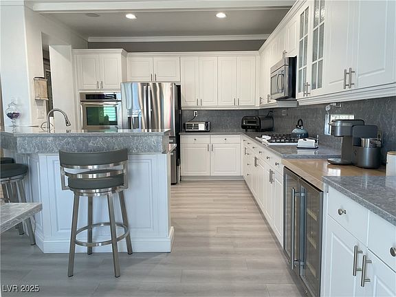 Absolutely Stunning Home in the Heart of Green Valley. Spectacular Features: LVP & Solid Wood Steps, Shutters w/ Designer Wainscoting & Surround Sound Intercom. Exquisite Kitchen Showcases Quartz Countertops, State of the Art Appliances, Breakfast Bar, Island & 2 Pantries. Plus Expansive Dining Area & Separate Bar. LR Displays an Open Concept Complete w/ FP Leading to the Staircase w/ Spectacular Wrought Iron & Wood Railing in addition to Genuine Hardwood Flooring. 2nd Floor has Built-In Computer/Office Station and Loft w/ Electric FP. Roomy Primary BR Suite w/ Designer Accents Adjacent to Luxury Bath w/ Separate Vanities, Vessel Sinks, Walk-In Shower & Great Closet w/ Extra Storage. 2 Car Garage has Race Deck Flooring & Hand Sink, 1 Car Garage has Epoxy Flooring & Finished Walls. Phenomenal Backyard w/ Gazebo, Elevated Sun Deck, Waterfall, Synthetic Turf, Stamped Concrete Walkways, Raised Planters & Children's Play Area. PLUS; Super Smart Technology. Newer A/C Units, Water Heater