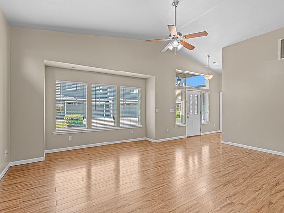 Discover easy living in this immaculate 3 bedroom, 2 bathroom townhome nestled within the desirable Beebe Woods subdivision. This single-level end unit boasts a bright and open floor plan accentuated by vaulted ceilings and an abundance of natural light streaming through large windows. The kitchen boasts plenty of wood cabinetry, a convenient layout along with an eat-in breakfast bar. Beautiful laminate flooring flows seamlessly throughout the home, creating a warm and inviting atmosphere. The primary suite features two closets along with an en suite bathroom. The low-maintenance private backyard is perfect for those looking for less hassle. All this plus a recently updated water heater in 2024 and convenient nearby guest parking. HOA fee covers landscaping, common areas and exterior maintenance. Don't miss this opportunity to make this clean, move-in ready house your new home!