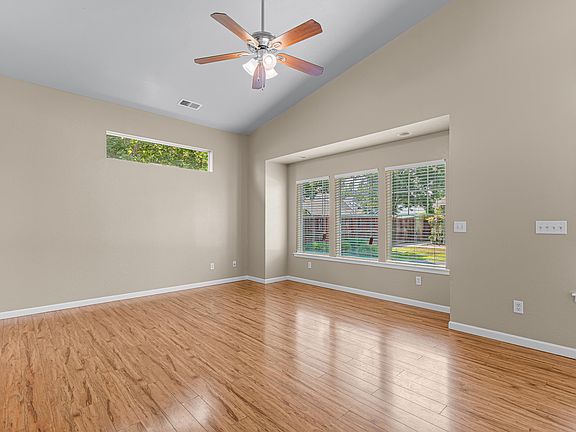 - Breakfast Bar, Ceiling Fan(s), Laminate Counters, Linen Closet, Primary Downstairs, Shower/Tub Combo, Vaulted Ceiling(s)