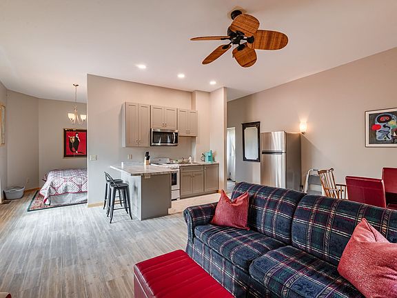 This spacious studio is fully furnished and all utilities are included in rent. Enjoy river town living in scenic De Soto, Wisconsin. Tenants will enjoy a beautiful outdoor courtyard including a fire pit area and off-street parking next to the building.