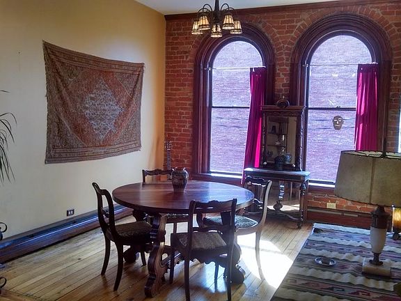 Located in the Northside Historical Railroad district. Very unique and charming 1700 Sq Ft space is close to all Missoula has to offer Recently repainted and fine tuned. This lovely apartment has 10 ft ceilings all original woodwork and flooring, two skylights located in mail hallway wide walk-up. Only one cat is allowed. LG Washer and dryer on-site. large kitchen formal dining room and spacious living room. One bedroom is quite large the other 2 are smaller. Unit has limited storage space so dressers are required for clothing and storage. The Kitchen has plenty of storage for dry-goods and the like. Formal Dining Rm. 5 Romanesque arched windows in front of building offering great views. Occupancy limited to 3 people the space is perfect for a professional couple who like to entertain. Office space available (bedroom). Tenant pays Gas Electric internet cable. Landlord pays water and sewer trash removal.